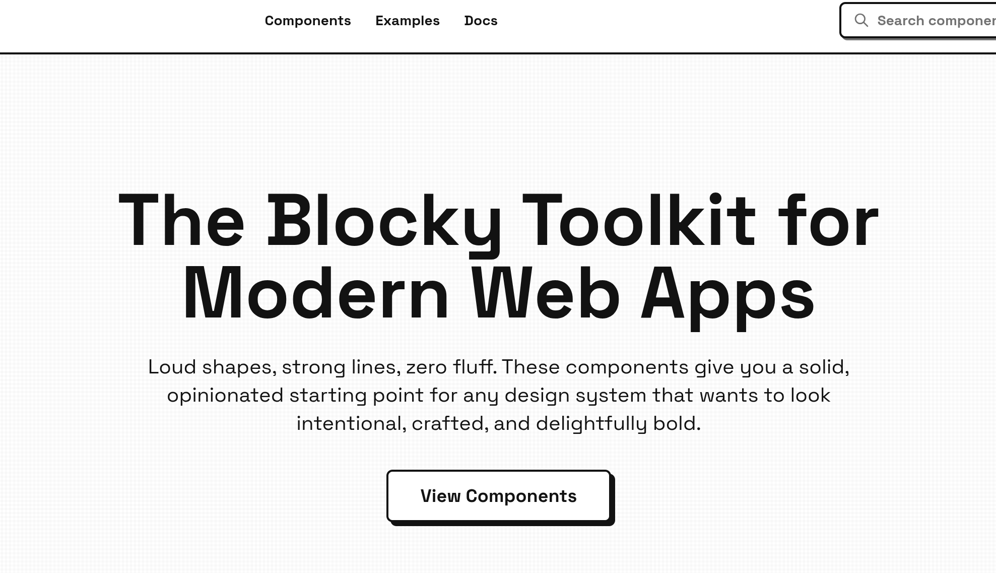 A collection of beautifully designed, blocky components that embrace a bold, raw aesthetic. Copy, paste, customize.